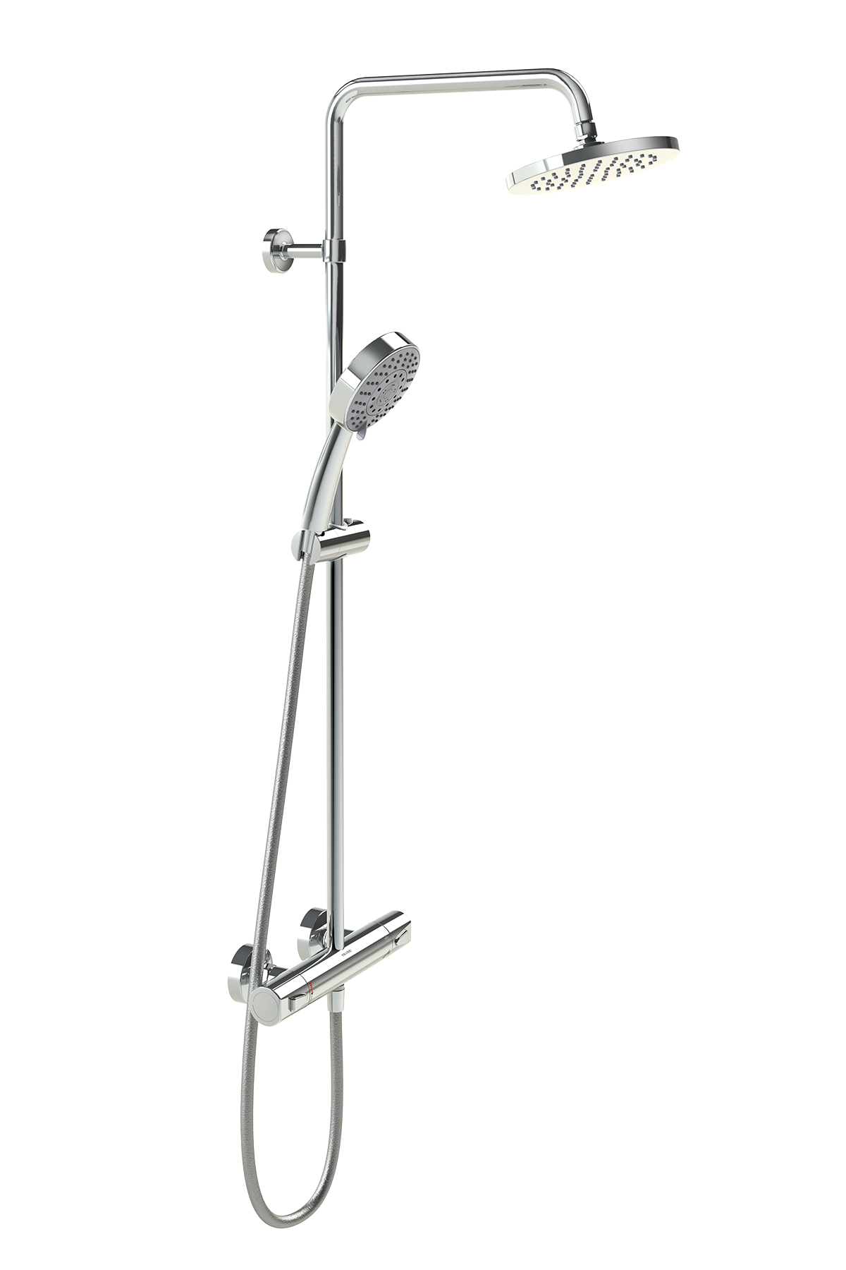 - Bestehend aus Handbrause 100 mm, 1-strahlig, Design-Brauseschlauch 1/2"x1/2"x125 cm, verdrehsicher, Wandbrausehalter eckig